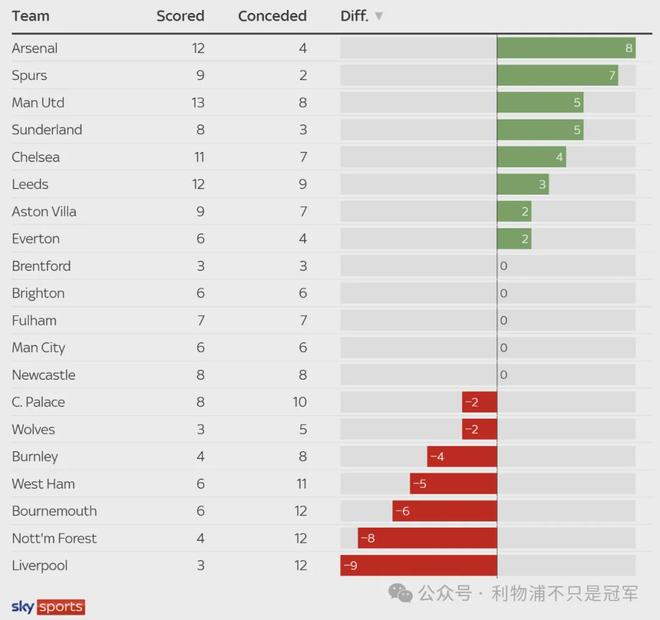 --本賽季英超不算點(diǎn)球,利物浦打進(jìn)3球丟12球,凈勝球-9,而榜首阿森納定位球打進(jìn)12球丟4球,凈勝球+8。慘不忍睹。
